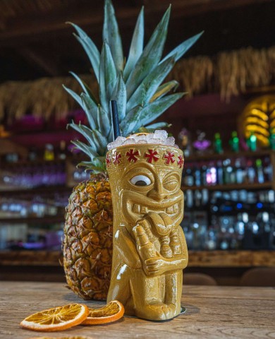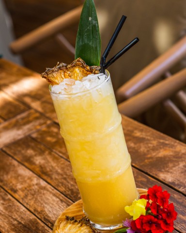 White rum, aged rum, triple sec, lemon juice, orange juice and pineapple juice, almond syrup