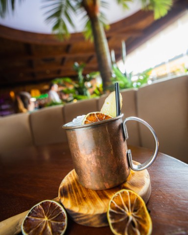 Cruz Plata Tequila, Triple Seco, Mango Syrup, Apple Juice, Natural Lemon Juice, Tabasco and Ginger Beer.