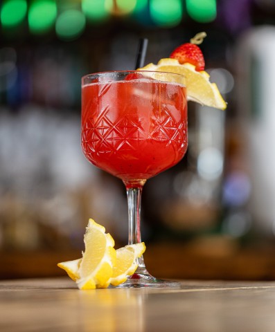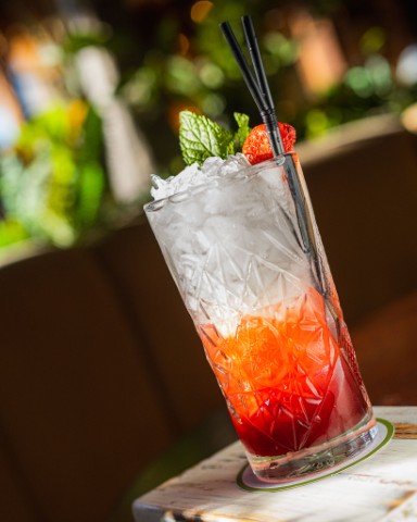 Tequila Cruzplata, Liqueur bergamot italicus, Natural lemon juice, Strawberry, Strawberry Puree and Ginger Beer