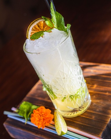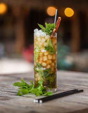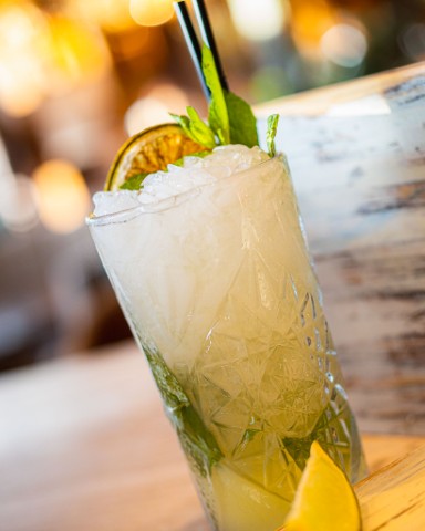 Rum Brugal añejo, angostura, natural lemon juice, sugar syrup, mint, Proseco.