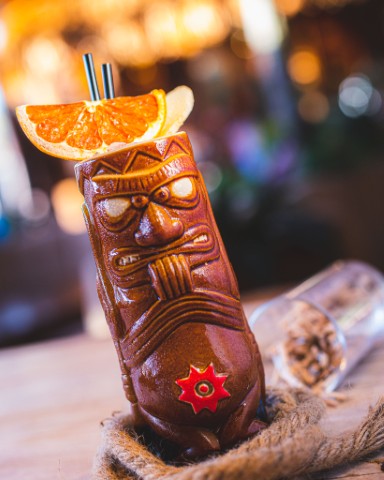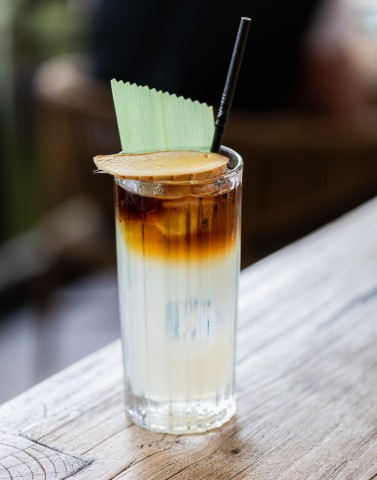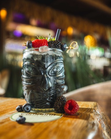 Kraken rum, Barceló white rum, natural lemon juice, almond syrup, ginger beer.