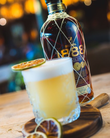 Brugal 1888 Rum, Triple Seco, natural lemon juice, almond syrup and egg white.