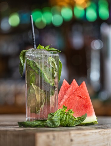 G'vine watermelon gin, natural lemon juice, watermelon syrup, fresh basil, Proseco.