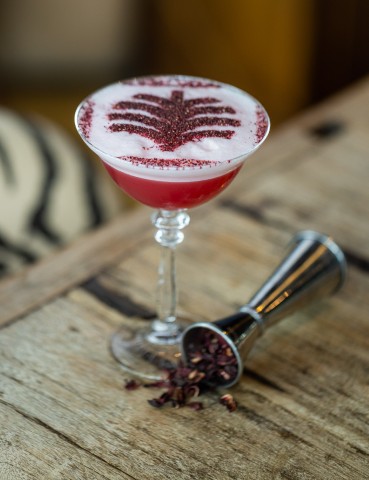 Cruz Plata Tequila, triple sec, natural lime juice, homemade hibiscus syrup and egg white
