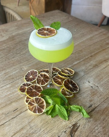 Limoncello, triple sec, mint liqueur, natural lemon juice, sugar syrup and egg white.